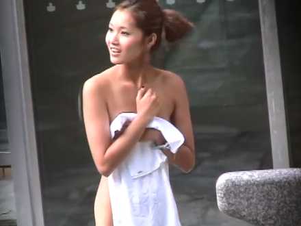 • 露天風呂でタオルを脇に挟みガードしてても湯船に入る直前に梅干し乳首を撮られる美女